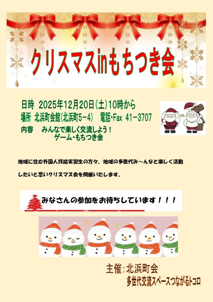 多世代異文化交流会としてクリスマス会(もちつきあり~)を企画しました!!