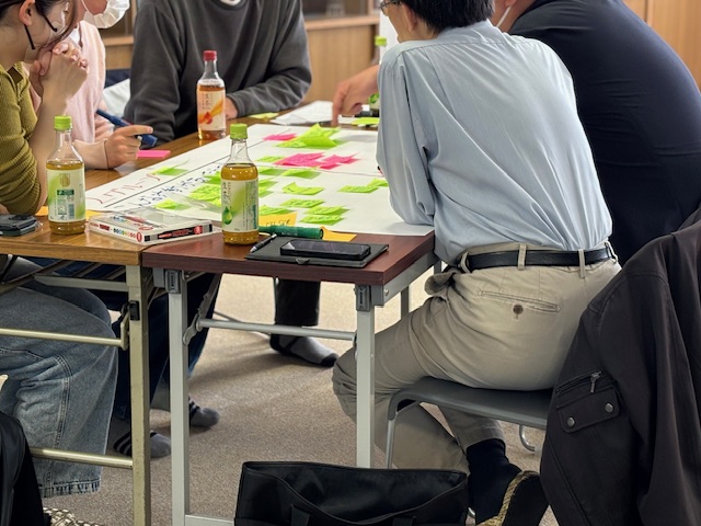 助け合い・支え合い、つながることの大切さや重要性についての講話や今までの実際の活動、函館学生団体ISARIBIwithさんの活動報告を受けて、今度は自分たちで「こんなのあったらいいな」「一緒にできることはなにかな」をテーマにグループワ-クを行いました。